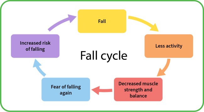 Some people, especially those who have had a fall, restrict what they do because of a fear of falling. While this sounds sensible, reduced activity actually puts you at a greater risk of falling. This is because it causes you to lose muscle strength and coordination. Read more about falls prevention.